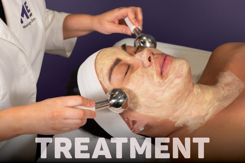 Treatment available at select Massage Envy franchised locations. Warm, soothing LED light is followed by facial massage using cooling globes to create a