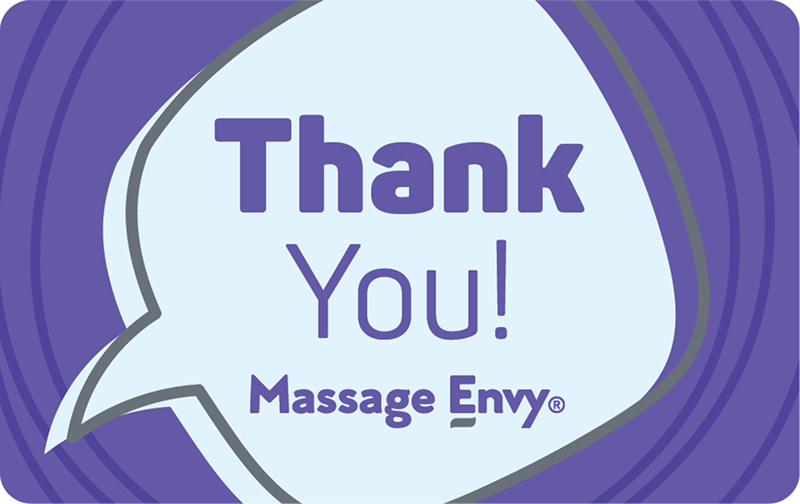 Birthdays, thank you's, or just because…When you need a gift fast, show how much you care by giving a Massage Envy e-gift card. It's a gift that's easy to give, and even better to receive.