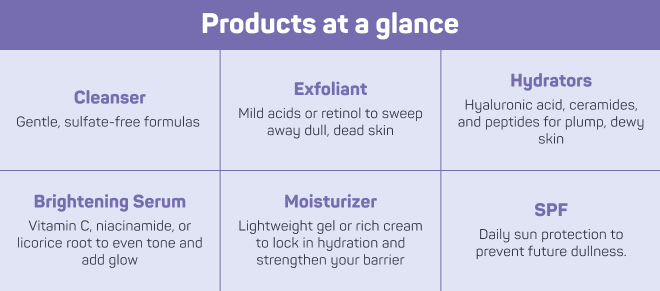 Sometimes dullness is your body’s way of signaling that it’s missing key nutrients. A lack of vitamins like C, E, A, and zinc can hinder repair and brightening, while not getting enough omega-3 fatty acids can contribute to dryness and a lackluster complexion (and even affect your hair).[6] [7]